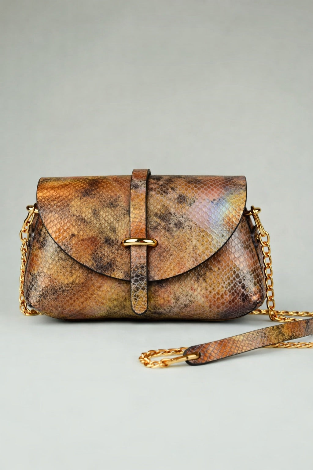 En cuir Italien de serpent teinté multicolore et cuir de veau