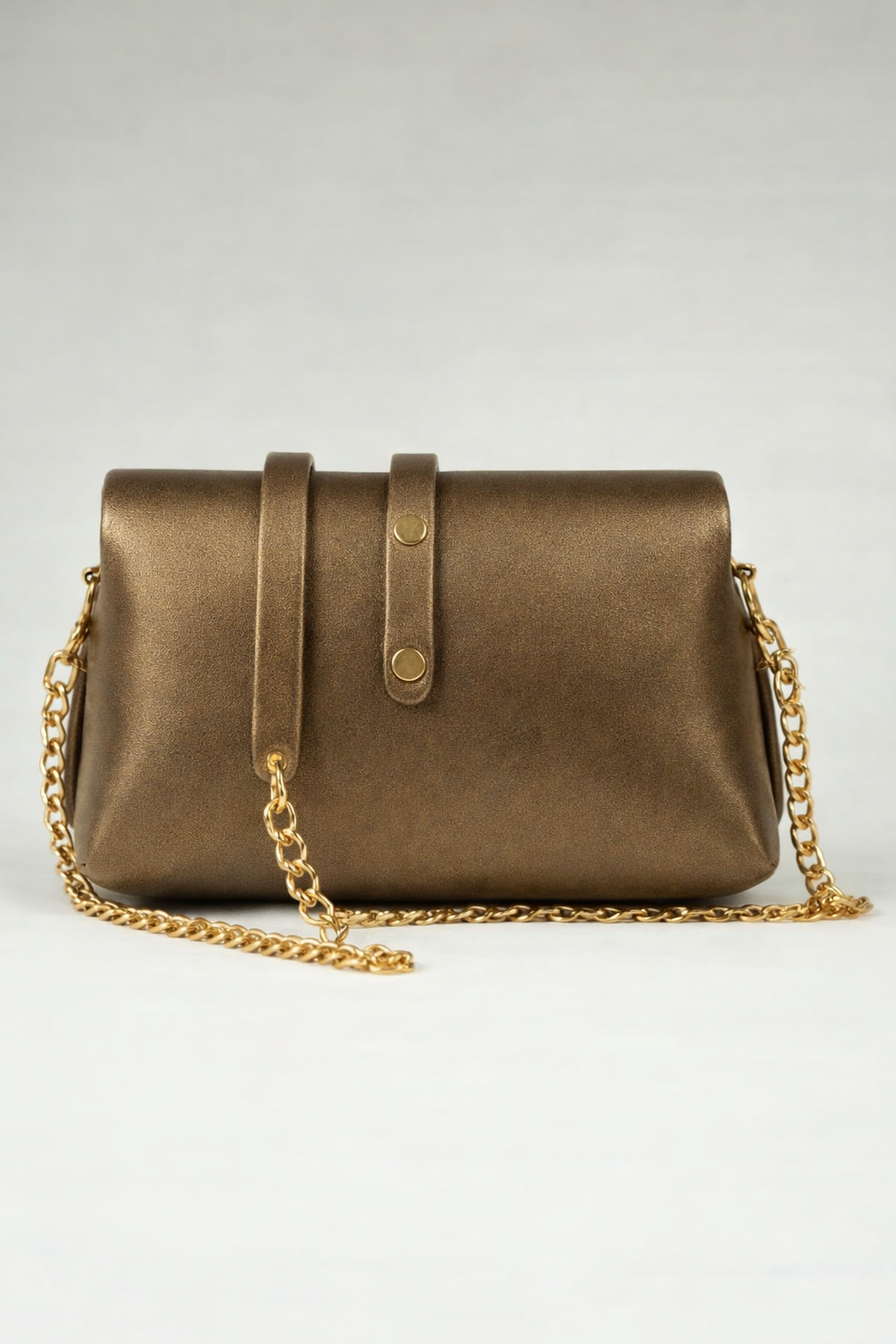 Made of smooth, bronze-colored, slightly metallic calfskin leather. Leather made in France in a French tannery.