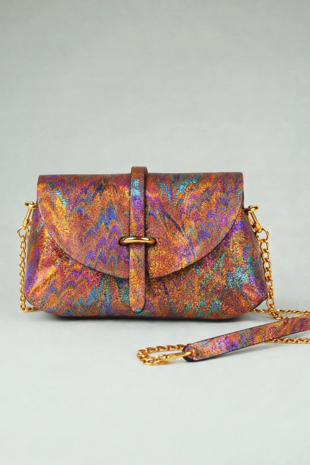 Ce sac est très facile d’entretien mais mérite un peu d’attention . Afin de prendre soin de son cuir irisé , prenez simplement un chiffon non teinté , non humide , sec et frottez le avec délicatesse .