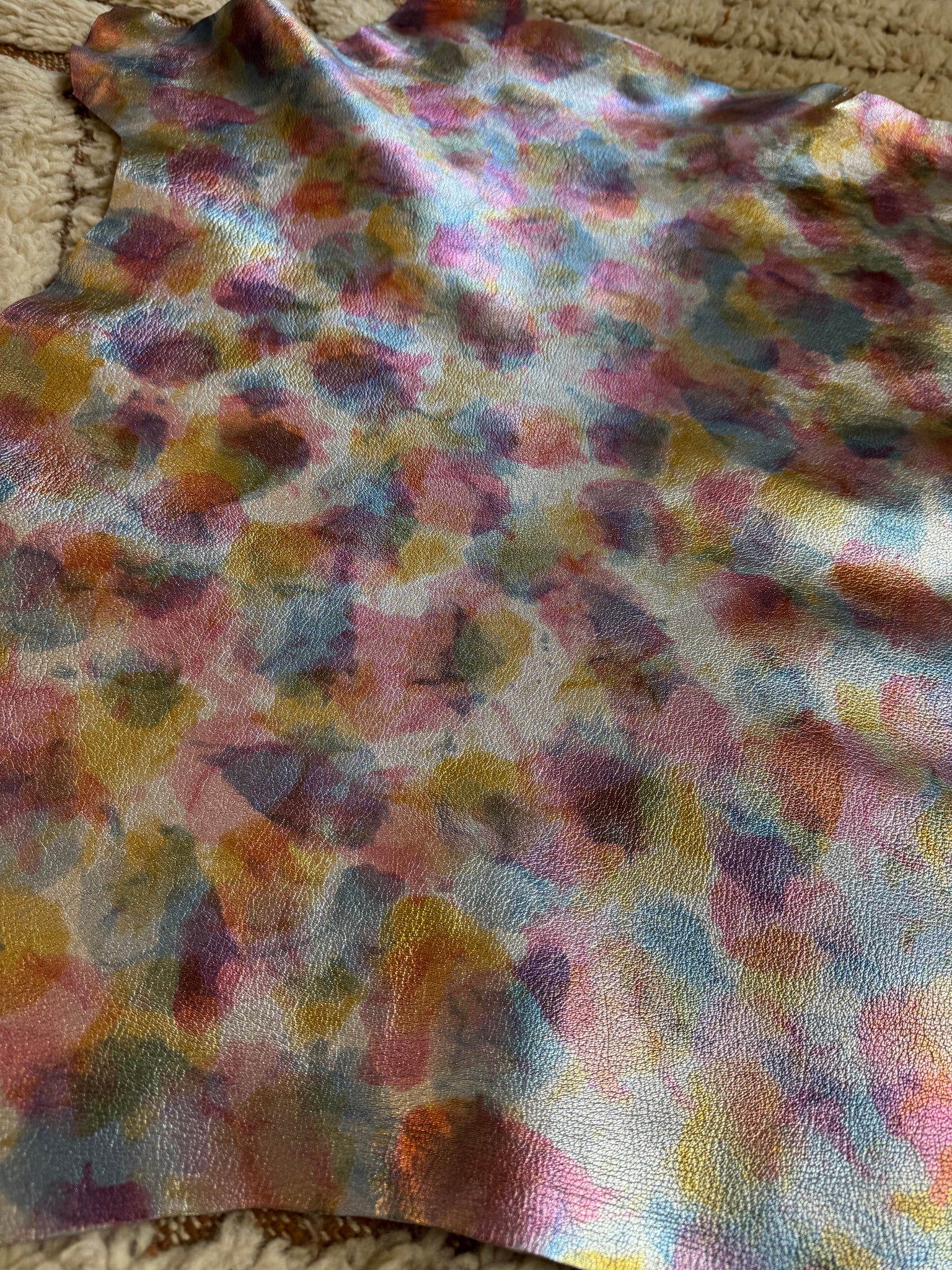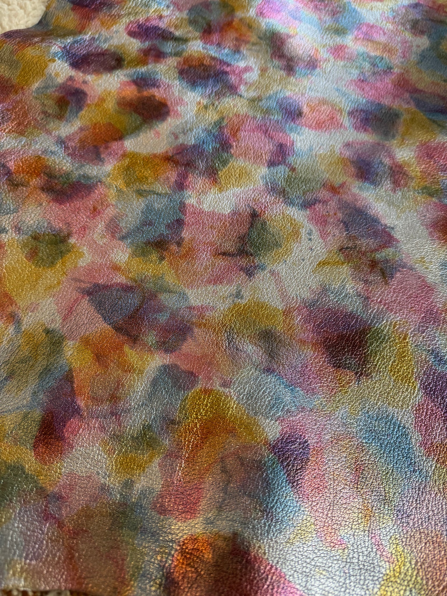 En cuir laminé imprimé holographique , multi colore , brillant irisé