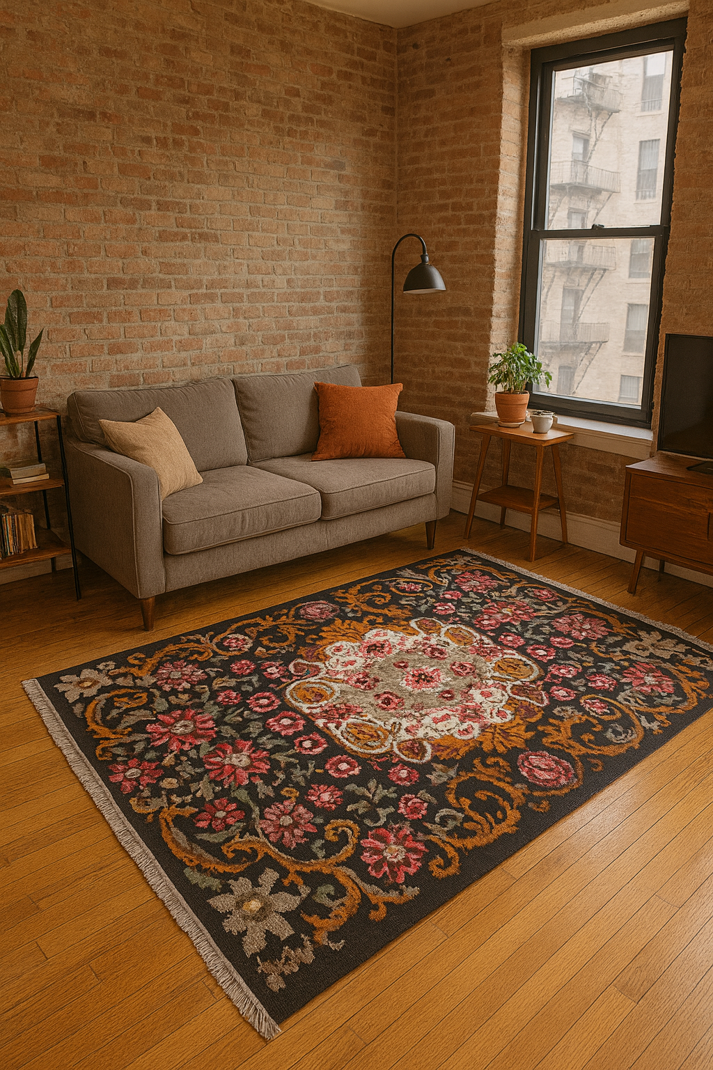 Pure merveille de Tapis Moldave Vintage ! En laine bouillie ! Il est extraordinaire ! Il va sublimer votre intérieur et la pièce où vous déciderez de l’installer ! Dedans ! Dehors ! La magie des tapis Moldaves !